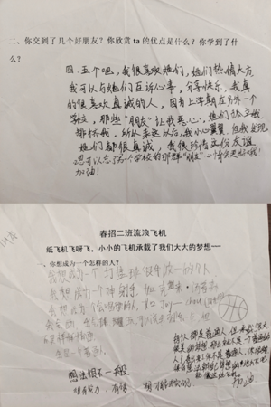 当你把快乐分享给朋友的时候你的快乐就会加倍,当你把难过倾诉给朋友的时候你的难过就会减半。在班级里肯定会有和你更合拍的玩伴以及没那么熟悉的同学,当纸飞机落在你的桌上时,可以收到一件“陌生同学”的故事,你的一句简单评论或许就能让这个“陌生人”感受到温暖。